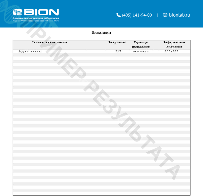 Фруктозамин – это гликированный альбумин сыворотки крови. Помимо гемоглобина неферментативному гликированию в плазме крови подвергается и альбумин, в результате образуется фруктозамин. Концентрация фруктозамина в крови зависит от концентрации альбумина и глюкозы. Определение концентрации фруктозамина в крови позволяет судить о том, имело ли место повышение концентрации глюкозы в крови за предшествующие исследованию 2-3 недели. Поэтому определение концентрации фруктозамина в сыворотке крови (помимо глюкозы и HbA1c) у больных сахарным диабетом является дополнительным критерием состояния углеводного обмена.