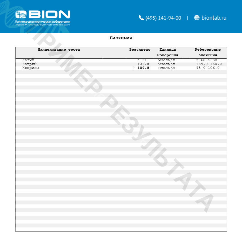 Комплексное исследование, включает в себя определение калия, натрия и хлоридов в сыворотке крови.