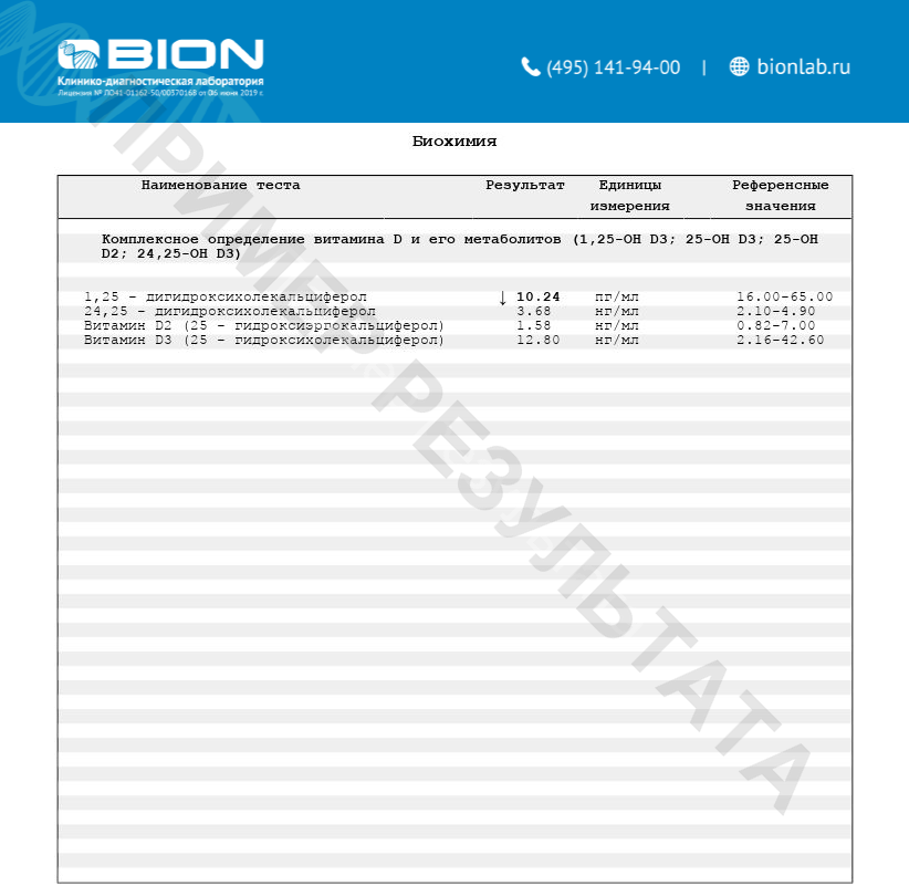 B207 Определение метаболита витамина D3 (1,25- дигидрокси D3); B612 25-OH витамин D (25 -гидроксикальциферол)
