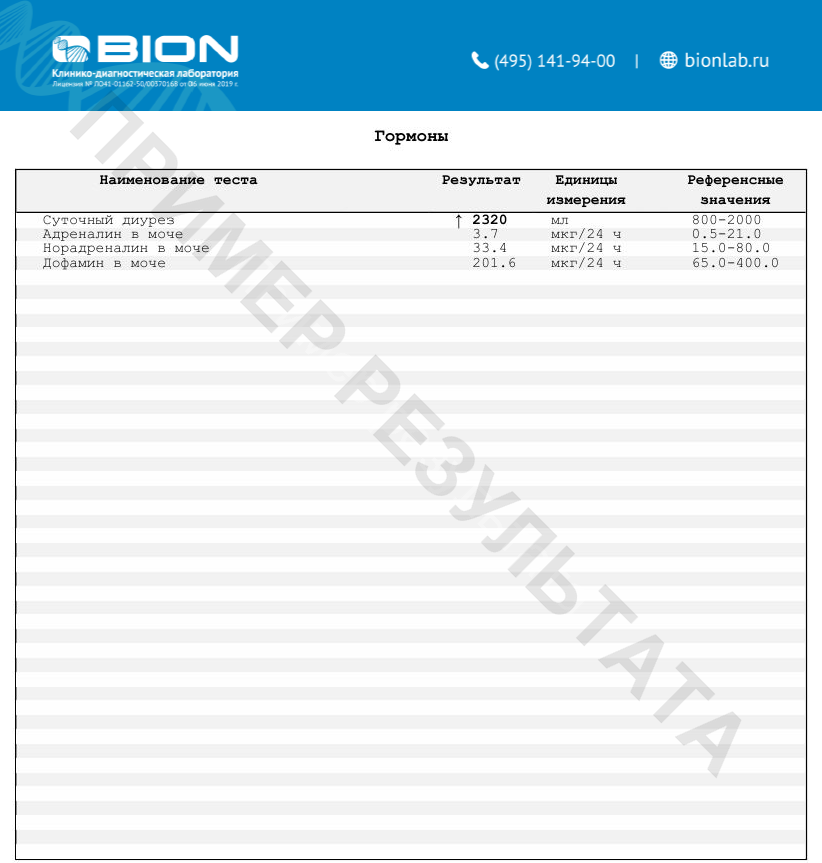 B556 Катехоламины (адреналин, норадреналин, дофамин); B320 Анализ мочи на содержание промежуточных продуктов катехоламинов: Метанефрин, норметанефрин в моче; B315 Комплексный анализ метаболитов адреналина, норадреналина, дофамина, серотонина (ГВК, ВМК, 5-ОИУК) в моче