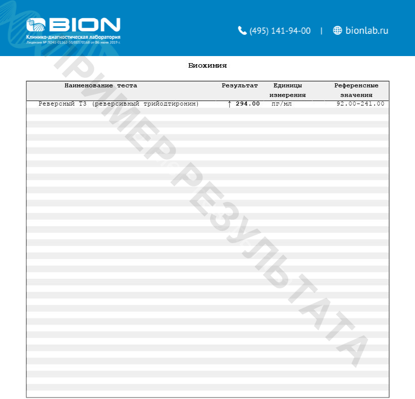 B400 ТТГ (тиреотропный гормон); B405 Т3 общий (трийодтиронин); B410 T3 свободный; B420 Т4 свободный