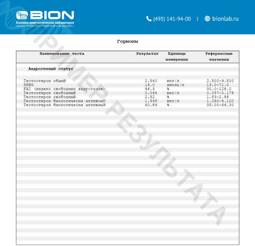 B480 Тестостерон общий; B485 Тестостерон свободный; B495 SHBG (глобулин, связывающий половые гормоны)