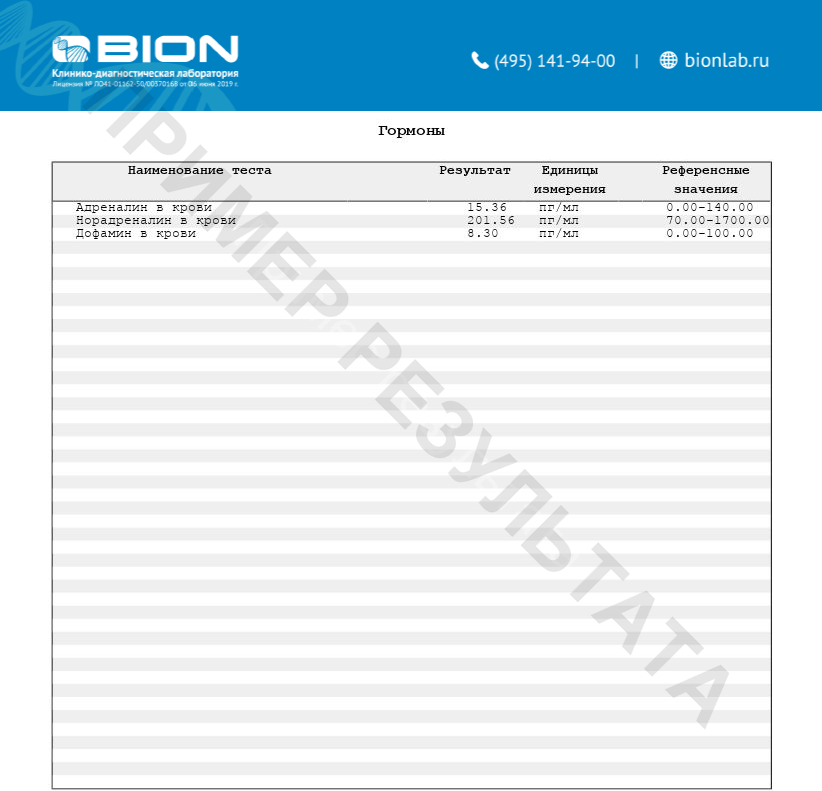 B310 Катехоламины (адреналин, норадреналин, дофамин) в моче; B553 Метанефрин и норметанефрин свободные