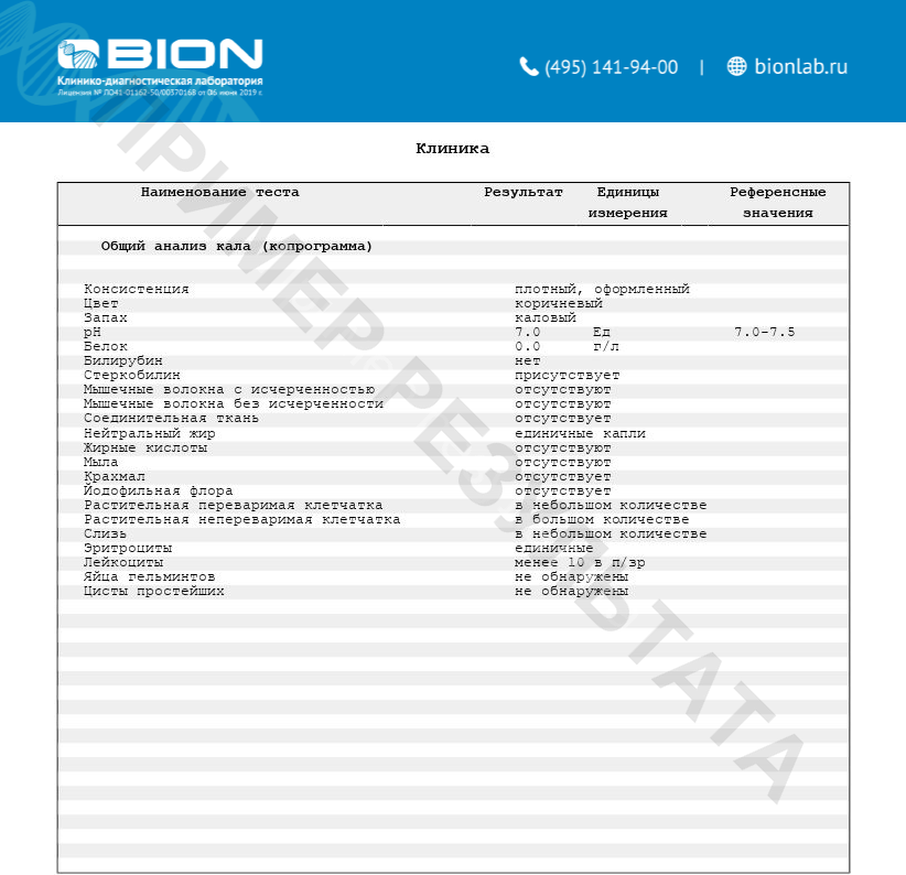 В каловых массах здорового человека белка нет. Положительная реакция на белок свидетельствует о наличии воспалительного экссудата, слизи, не переваренного пищевого белка или кровотечения.