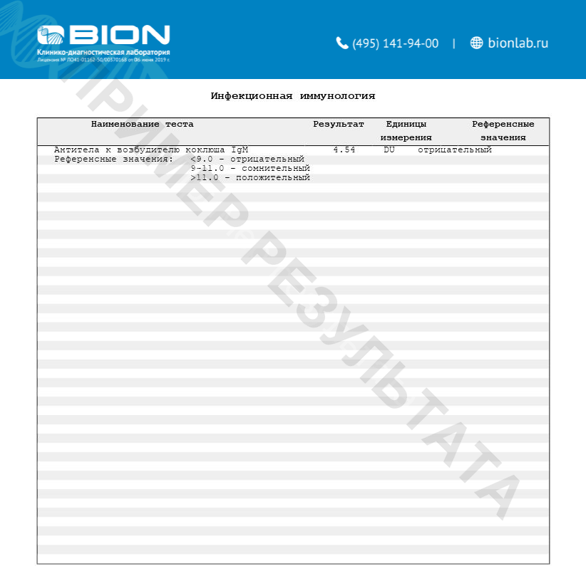 Положительный результат исследования, при наличии клинической картины заболевания, свидетельствует об острой инфекции Bordetella pertussis.