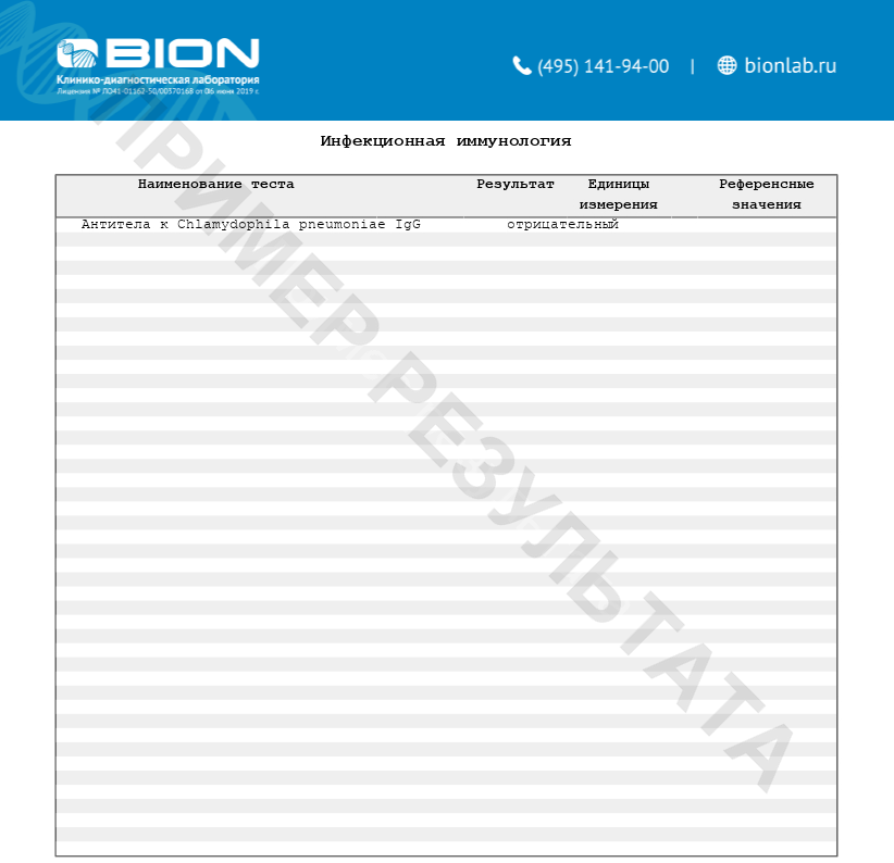 Положительный результат исследования свидетельствует о инфекции Chlamydophila pneumoniae (текущей или имевшей место в прошлом).