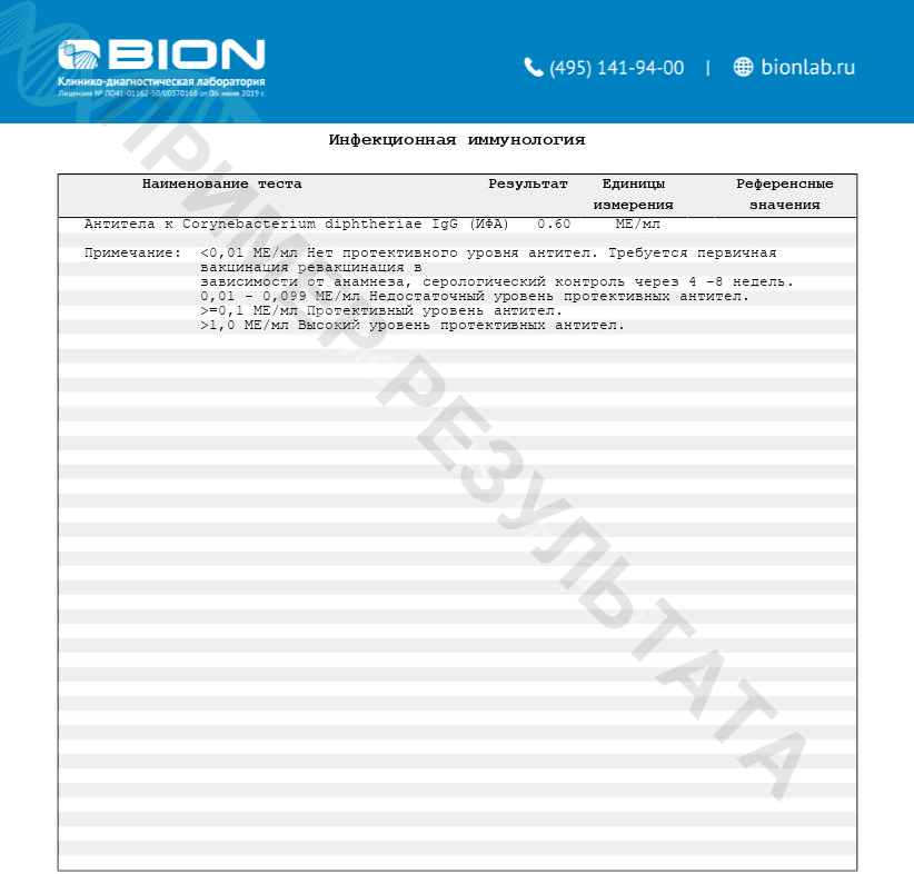 Положительный результат свидетельствует о текущей или перенесенной инфекции, об эффективности вакцинации (титр ≥1/80).
